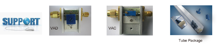 Option:VAD in DIP Package is available with a shaft.Part number with a suffix H represents VAD with a handling shaft. For example,VAD1530BDH is 0-15dB,3dB/step,75ohm,DIP,with handling shaft. |